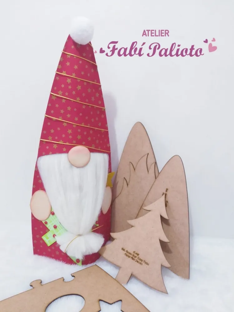G1.465 Gabarito de Moldes em MDF Gnomo Noel Cobre Vinho