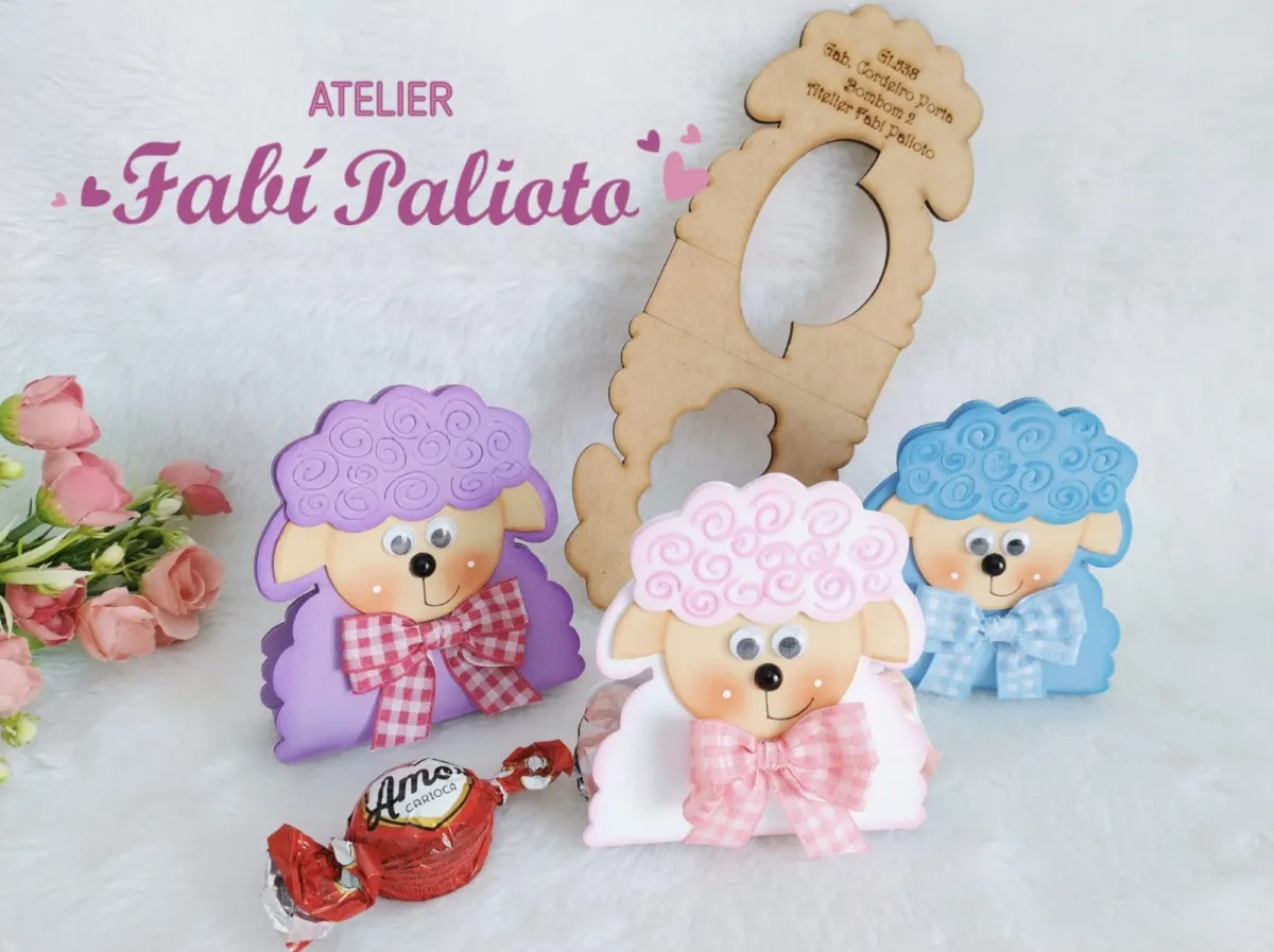 G1.538 Gabarito de Moldes em MDF Embalagem Cordeiro Porta Bombom 2 - Coleção Cordeirinho de Jesus