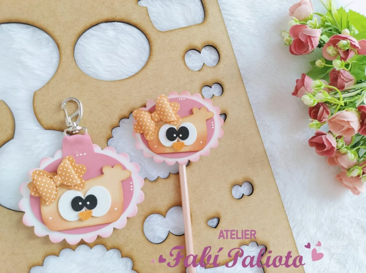 G1.608 Gabarito de Moldes em MDF Corujices da Mamãe - Chaveiro e Ponteira