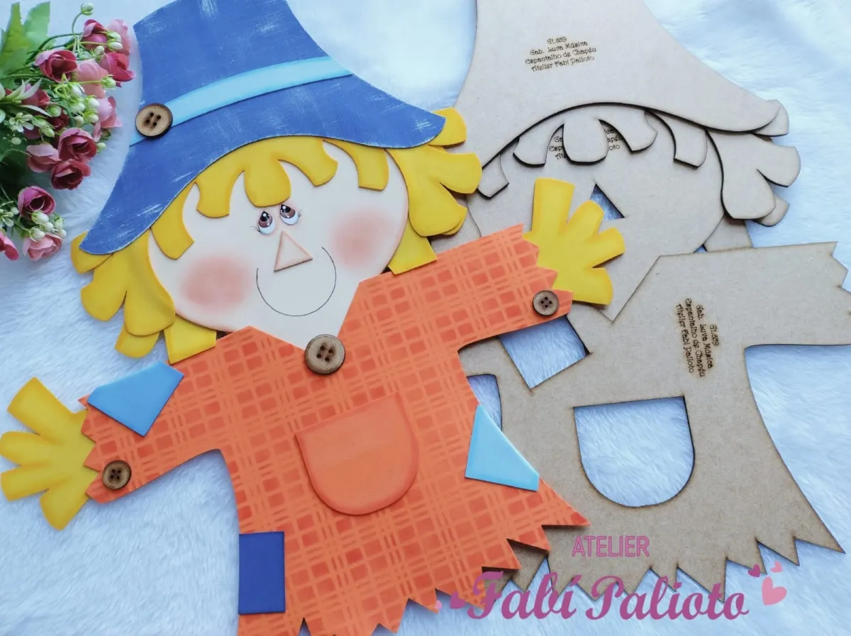 G1.659 Gabarito de Moldes em MDF Luva Música Espantalho de Chapéu