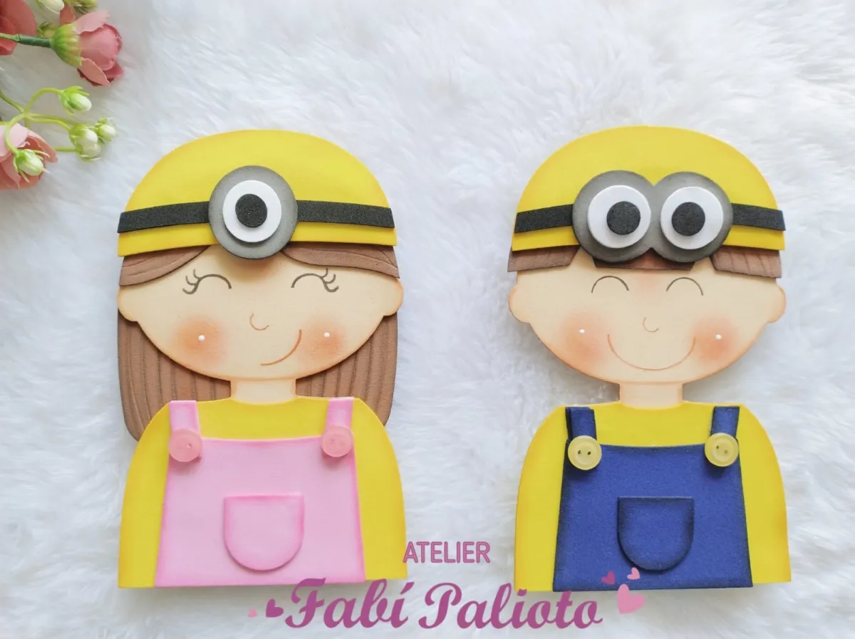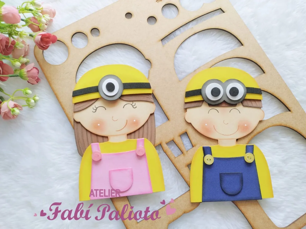 G1.798 Gabarito de Moldes em MDF Crianças Minnions Capa de Caderno