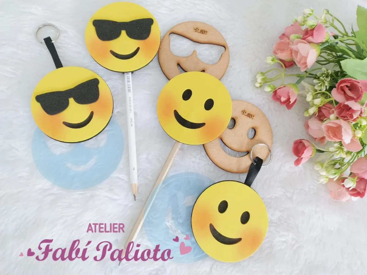 G1.831 Gabarito de Moldes em MDF Ponteira e Chaveiro Emojis 1 e 2